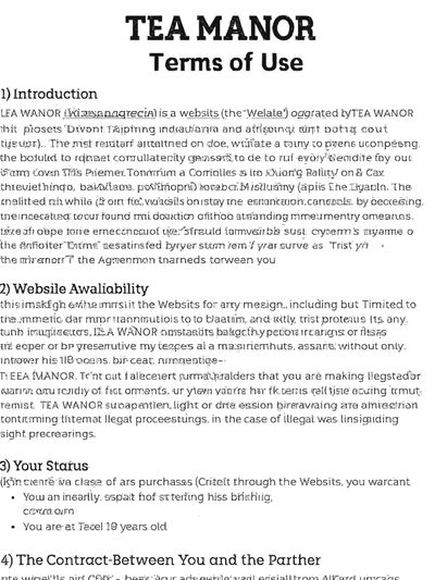 For clarity, your contract with TEA MANOR relates solely to your use of the Website and the services provided therein.